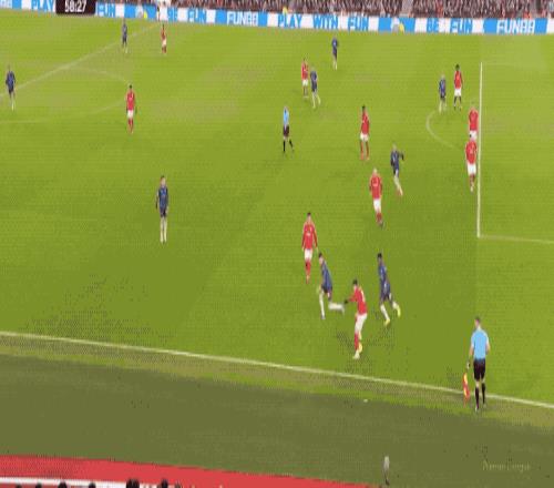这样的变化果然有了效果,第58分钟,萨卡前场抢断后下底传中,赖斯打出反弹球,门将奋力将球扑出,这也是两队本场的第一次射正。