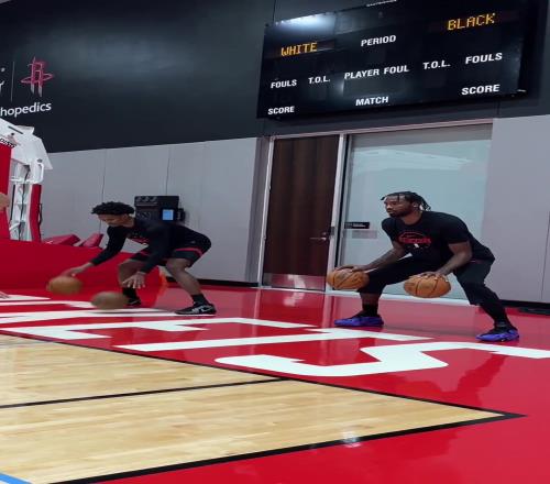 阿门与伊森一同进行运球训练!火箭官方:恐怖双胞胎保持同步
